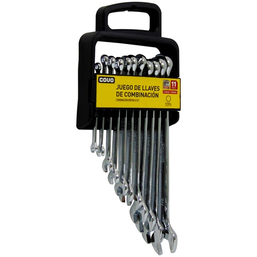 JUEGO DE LLAVES COMBINADAS, 11 PIEZAS, ACABADO EN CROMO VANADIO DE GRADO PROFESIONAL, ESTANDAR, 12 PUNTAS, MEDIDAS: 1/4" - 5/16" - 3/8" - 7/16" - 1/2" - 9/16" - 5/8" - 11/16" - 3/4" - 13/16" - 7/8"