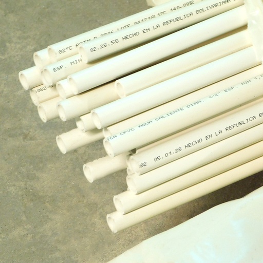 TUBO PVC 1/2" X 3 MTS PARA PRESION DE AGUA CALIENTE